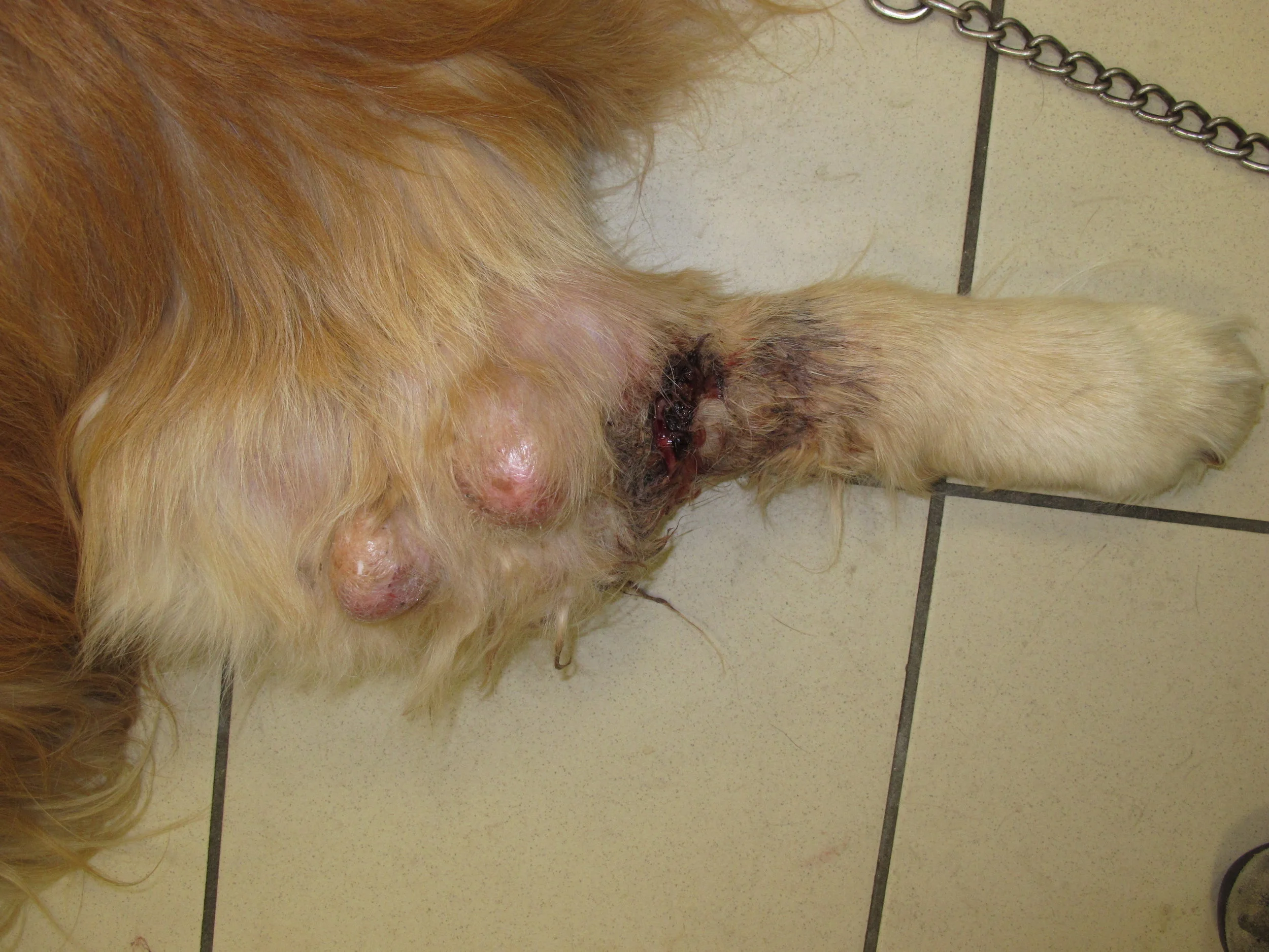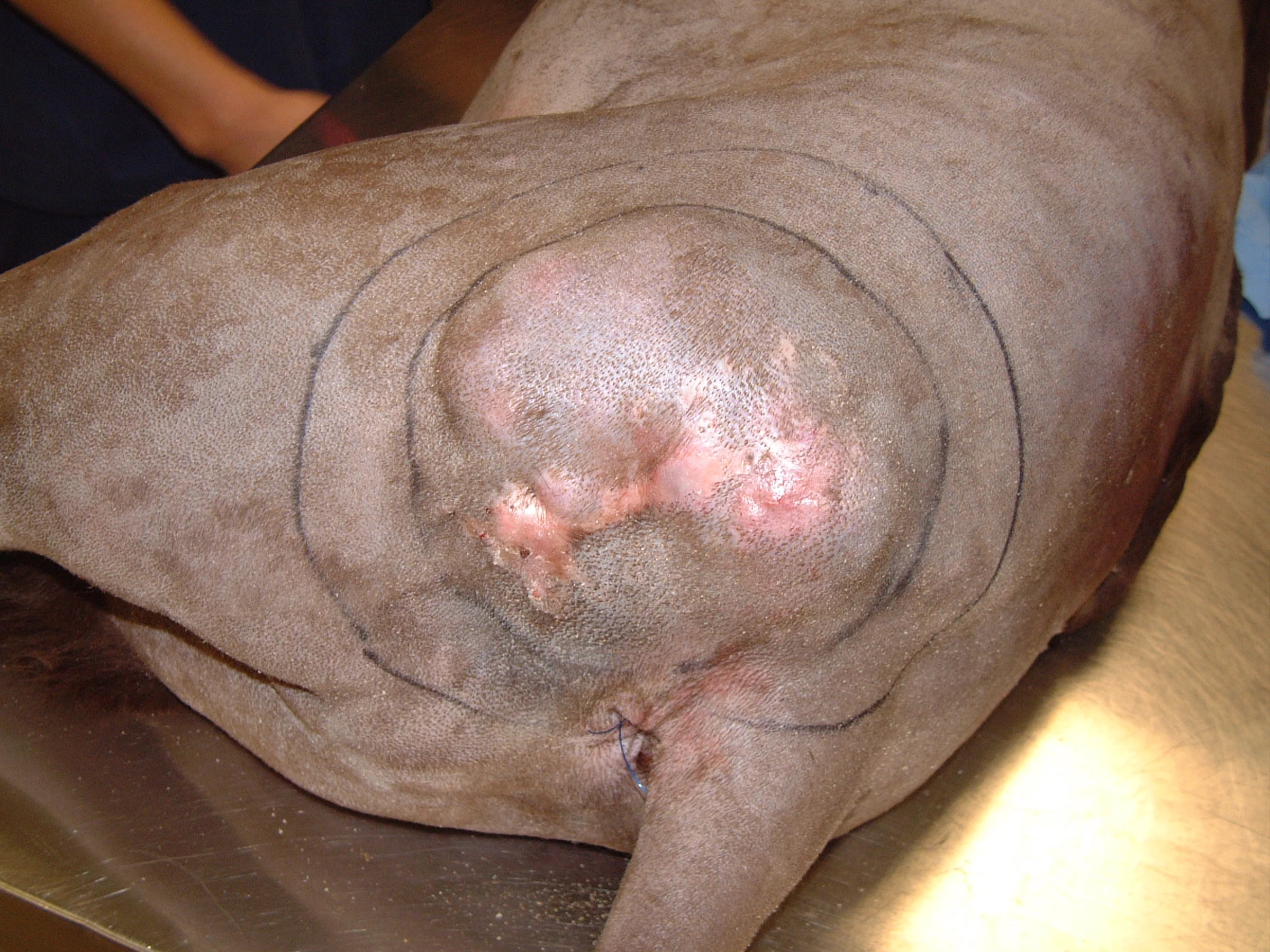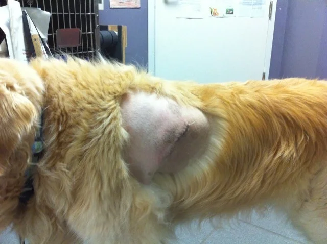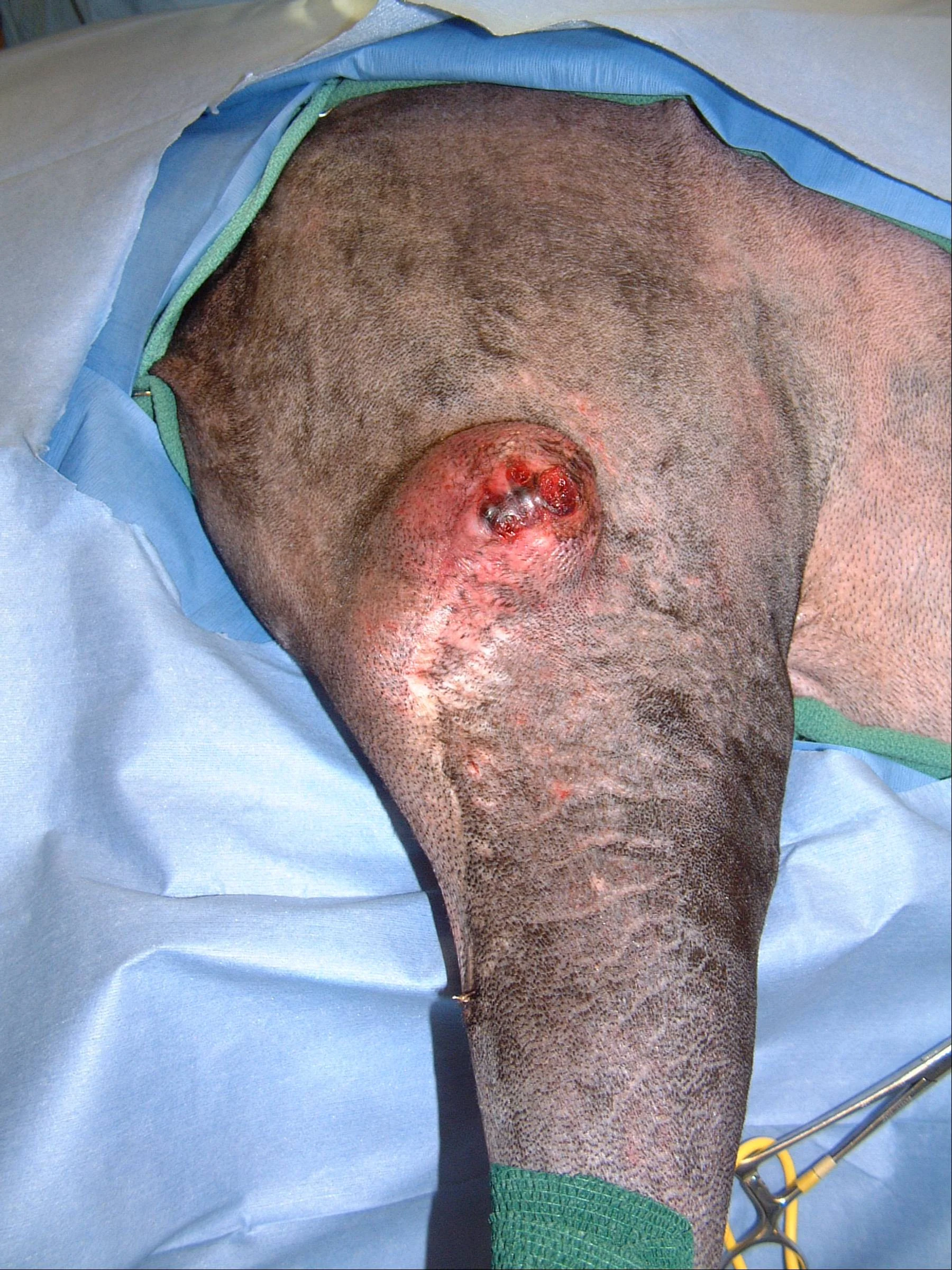 The recommended treatment for STSs is surgical excision. The surgical approach depends on the location (truncal versus extremity), size, degree of invasiveness, and histologic grade. Wide excision (with 3cm lateral margins and one fascial layer for deep margins) is recommended for truncal STSs, grade III STSs, STSs > 5cm, and invasive and fixed STSs. Wide excision of STSs on the limbs and head is often not possible. In these cases, particularly if mobile, well-circumscribed and < 5cm, then marginal excision is possible with low local recurrence rates. In one large study of marginally excised STSs in dogs, the overal local recurrence rates for histologically incompletely excised grade I, II, and III STS were 7%, 34%, and 75%, respectively; and no dog with a completely excised STS developed local recurrence regardless of histologic grade. Historically, radiation therapy has been recommended for incompletely and/or marginally excised STSs and this is often recommended in the treatment of STSs in people, but there is no evidence to support this multimodality therapy in dogs. There is no published study comparing surgery alone to surgery and radiation therapy for dogs with incompletely excised STSs. There have been six studies published on marginal and/or incomplete histologic excision of STSs alone and three studies published on radiation therapy following marginal and/or incomplete histologic excision of STSs. While it is very difficult to compare these studies because of different study criteria, the local recurrence rates varied from 11%-28% and 16%-31% for surgery alone and surgery and radiation therapy, respectively.