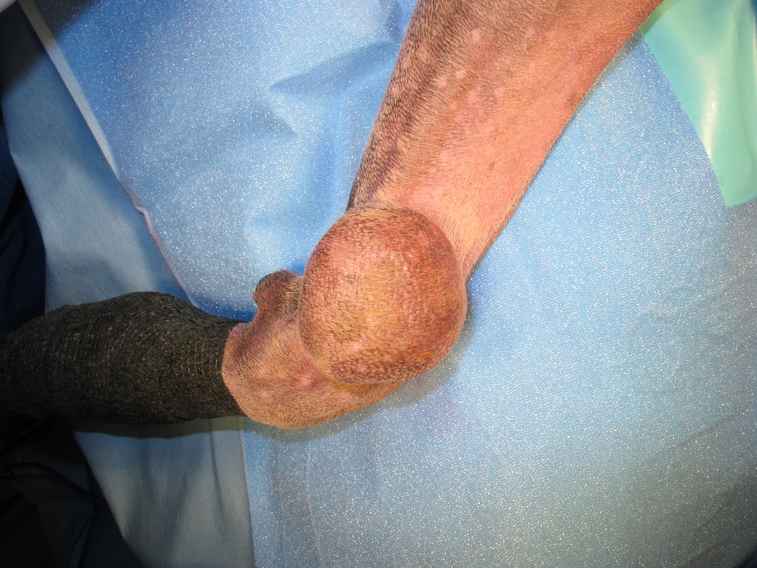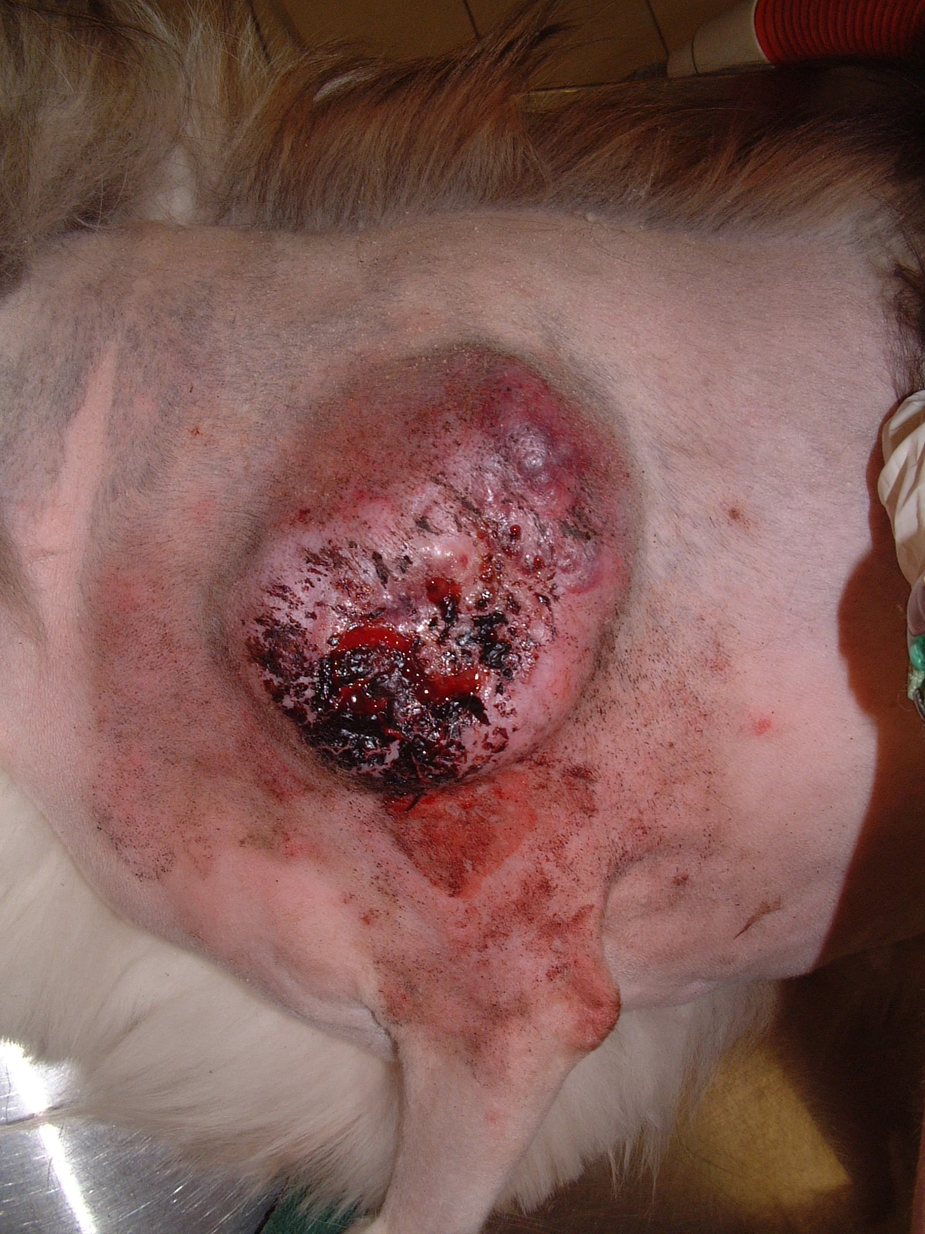 Soft tissue sarcomas (STSs) are a diverse group of tumors and include fibrosarcoma, peripheral nerve sheath tumor, hemangiopericytoma, and liposarcoma. These are all grouped under STS because they have a similar biologic behaviour and outcome. Soft tissue sarcomas are locally aggressive tumors with a reportedly high risk of local recurrence, however this has been recently been questioned especially for STSs at or below the elbow and stifle. The risk of metastasis is low to moderate and is dependent on histologic grade.